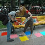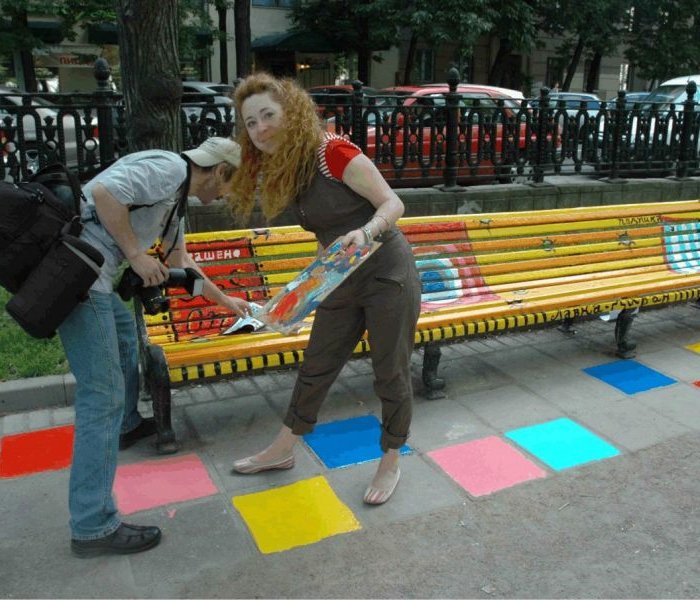 Желающих раскрасить скамейку оказалось гораздо больше, чем самих лавок. Арт-объектами стали и урны, и мусорные контейнеры. Тем, кому не хватило «объектов», организаторы предлагали раскрасить цветными карандашами скамейки на красочных открытках.