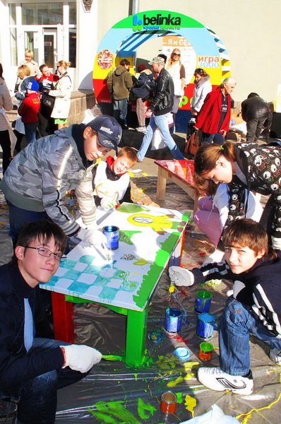 Семьи звёзд кино, театра и ТВ, артисты и музыканты вместе с детьми, воспитанниками Мытищинской школы интерната музыкального воспитания и семьями горожан, приславшими свои эскизы - продолжат роспись “Лавки Мира”!