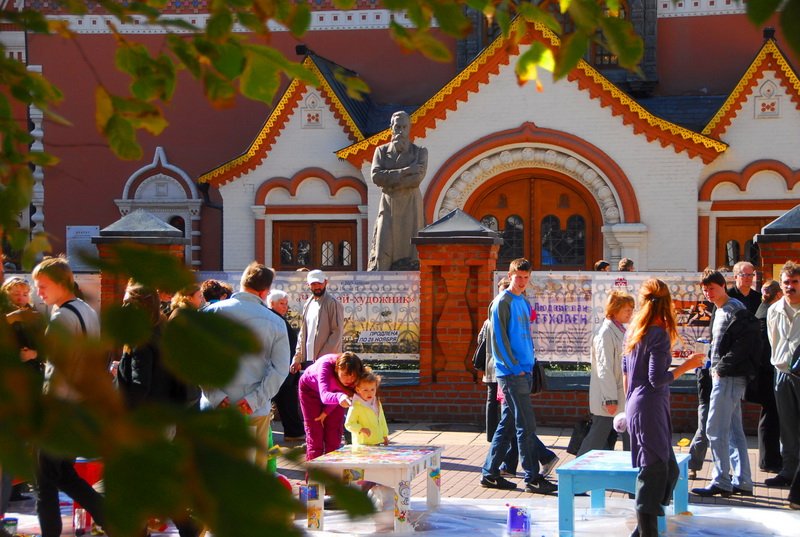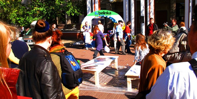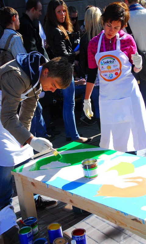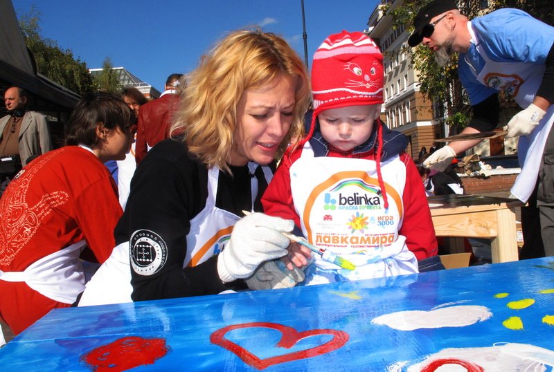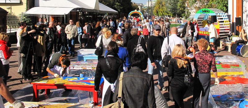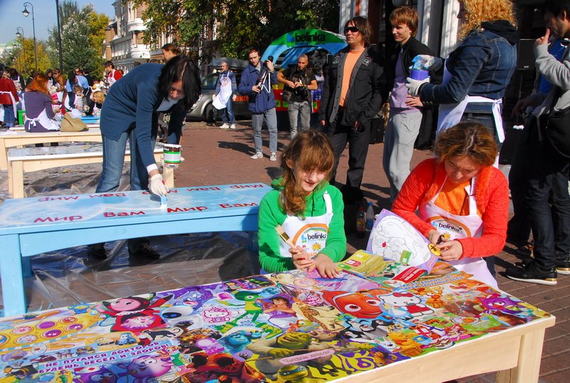В этом году, в Лаврушинском переулке, собрались известные художники: Сергей Цигаль, Владислав Малышев Монро, Петр Аксенов, Анна Броше, Вероника Пономарева, и другие. В течение дня, в реальном времени художники расписали самую длинную лавку – символ мира и дружбы. Краску предоставил постоянный партнер проекта Belinka.