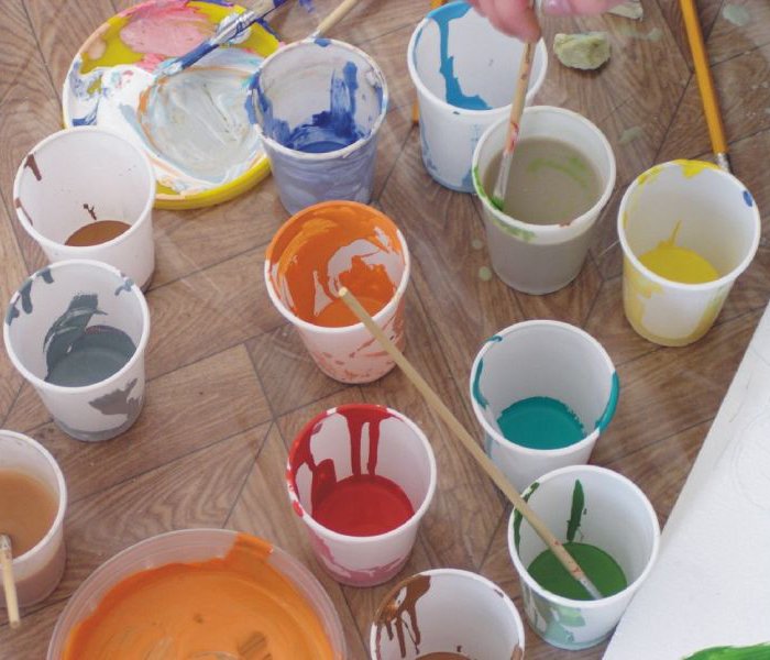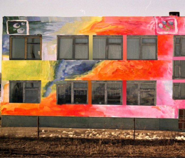Красками “Belinka” было решено раскрасить фасад и фойе интерната. Дизайнерами и художниками выступили ученики Московской международной киношколы (будущие актеры, режиссеры, мультипликаторы, сценаристы, - старшеклассники 12-17 лет) и сами воспитанники Крапивенского интерната.