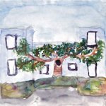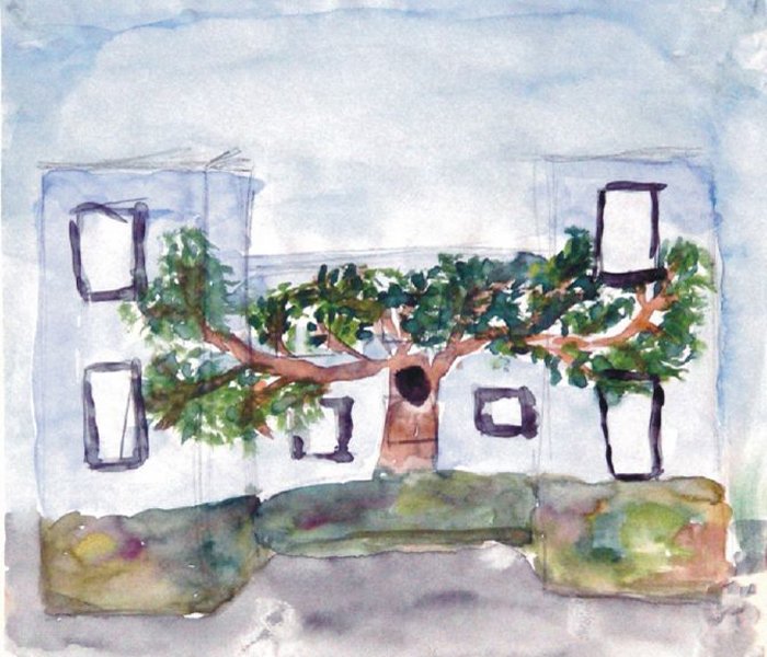 Сначала был проведен пленер (рисунок на натуре). Дети, привыкшие рисовать в четырех стенах, за партой, оказались на улице, там, где грязь, слякоть, ветер. На пленере рисовали здание их интерната.