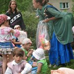 Ребята из Детского дома "Ласточка" вынесли подарки, которые сделали своими руками - рамочки, внутри которых с помощью разноцветных зернышек и круп были нарисованы цветы и деревья. А Мачеха - Настя Шенгелия приготовилась раздавать игрушки. Наступил перерыв, когда все суздальские детдомовцы, студенты Киношколы, Торосовские ребята перемешались, и каждый общался с кем-то. По всей территории можно было увидеть группы детей, которые качались на качелях, кидали шарики, рисовали, показывали свои игрушки, затевали игры. И так, наверное, могло продолжаться еще долго, если бы не нужно было уезжать.