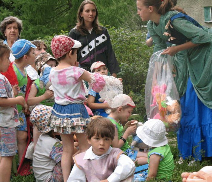 Очень важно, что дети из «Ласточки» контактировали с детьми из другого детского дома. Потом, когда уже состоялись показы спектакля, они вместе играли, пели, дарили подарки, действовали в непривычной для себя позиции: не для них делали праздник, как это часто бывает, но они сами делали праздник для других детей.