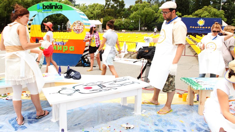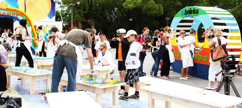 Участники XXII открытого российского фестиваля "Кинотавр" расписали в Сочи "Лавку Мира". Акция прошла в день закрытия киносмотра 11 июня. Известные актёры, режиссёры и деятели кино вместе с жителями и гостями курорта раскрасили городские скамейки, которые будут затем установлены в детских домах, домах престарелых и больницах.