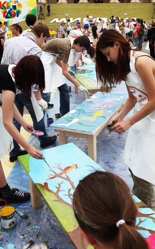 Социально-культурному проекту "Лавка Мира" в этом году исполняется 5 лет, за это время его участники уже украсили своими творениями улицы Москвы, Сочи, Нижнего Новгорода, Перми и Санкт-Петербурга. По задумке организаторов акции, лучшие "Лавки Мира" будут установлены на спортивных олимпийских площадках.