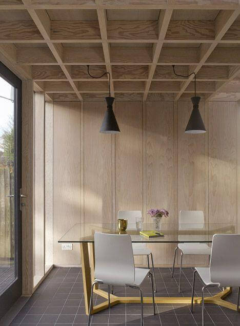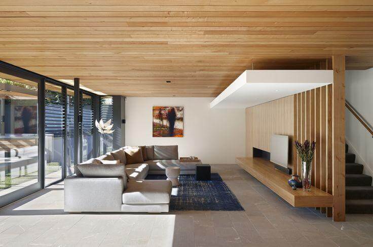 А еще дерево обладает особыми характеристиками, которые глупо не использовать для потолка: древесина довольно неплохо защищает от шума и лучше сохраняет тепло. К тому же потолок из дерева может равномерно рассеивать свет по помещению. С другой стороны, древесина не любит влаги, ее нужно беречь от насекомых и плесени, со временем она рассыхается — но все это давно не проблема, поскольку существуют специальные надежные средства для дерева (как мы уже писали, при правильном уходе сегодня дерево можно смело использовать даже на кухне и в ванной комнате).
