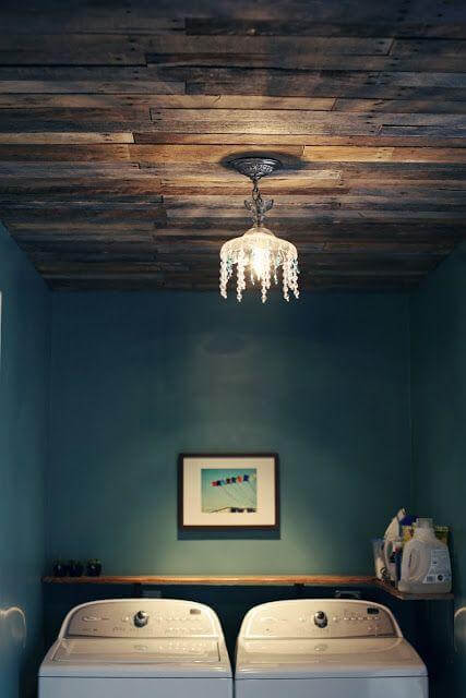 Что может быть проще, чем обои? Достал рулон — наклеил на потолок. Деревянные обои могут быть шпоновыми, из натурального дерева, представлять собой отдельные дощечки, которые собираются на специальных профилях или тонкие полоски дерева, заранее наклеенные на текстиль или пробковое полотно. Кстати, это отличный вариант для комнаты с и без того низким потолком!