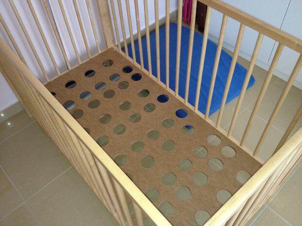 Как правило, дно детской кроватки выглядит так: сплошной лист фанеры или ДВП. Но каким бы экологичным, гипоаллергенным и замечательным ни был матрас, врачи рекомендуют усиливать его вентиляцию за счет дна кровати.
