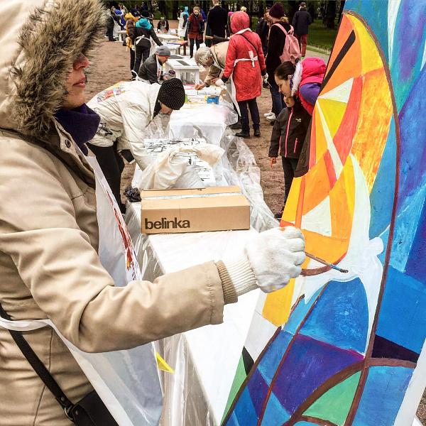 Акция прошла в Михайловском саду при участии Русского музея. В мероприятии приняли участие ведущие петербургские художники, студенты художественных вузов, известные люди, взрослые и дети, занимающиеся по арт-терапевтическим программам Русского музея.