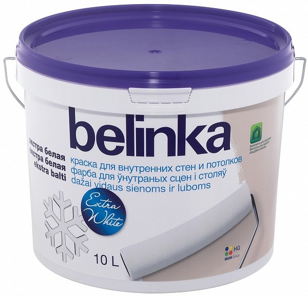 Belinka краска для внутренних стен и потолков предназначена для защиты поверхности стен и потолков в жилых помещениях. Подходит для окрашивания всех типов минеральных штукатурок, волокнисто-цементных плит, обоев из стекловолокна, рифленых бумажных обоев и старых покрытий.