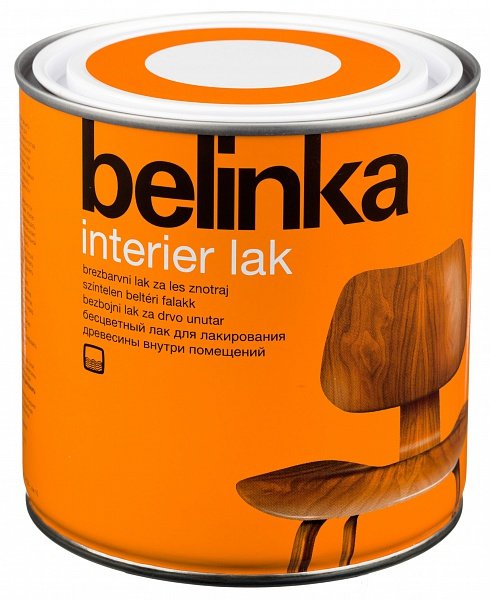 Belinka Interier Lak – бесцветное покрытие, предназначенное для декоративной защиты древесины в жилых помещениях: настенные и потолочные покрытия, мебель с пористыми фасадами, полки, внутренние двери и т. д.